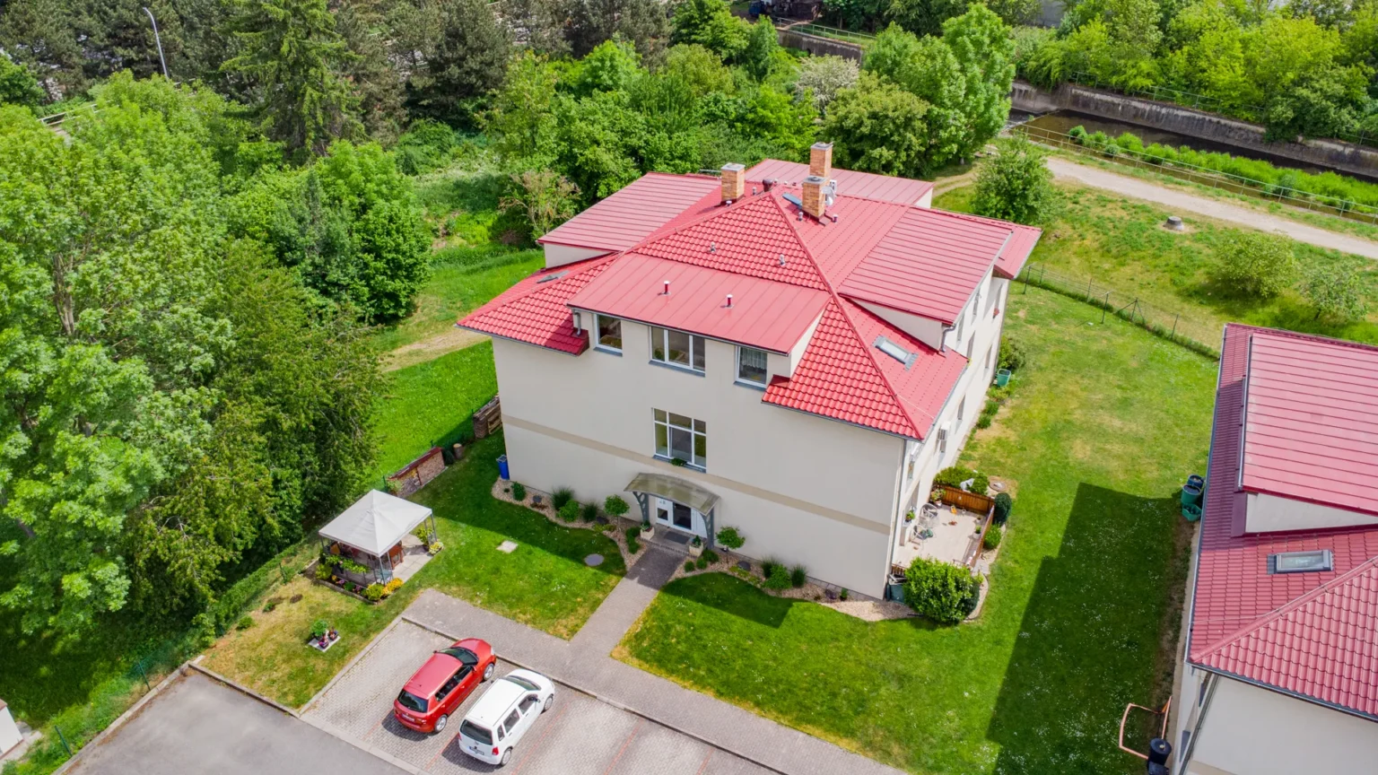 ✅ Oplocený privátní areál s upravenou zelení, altánem a parkovací plochou – pouze pro rezidenty