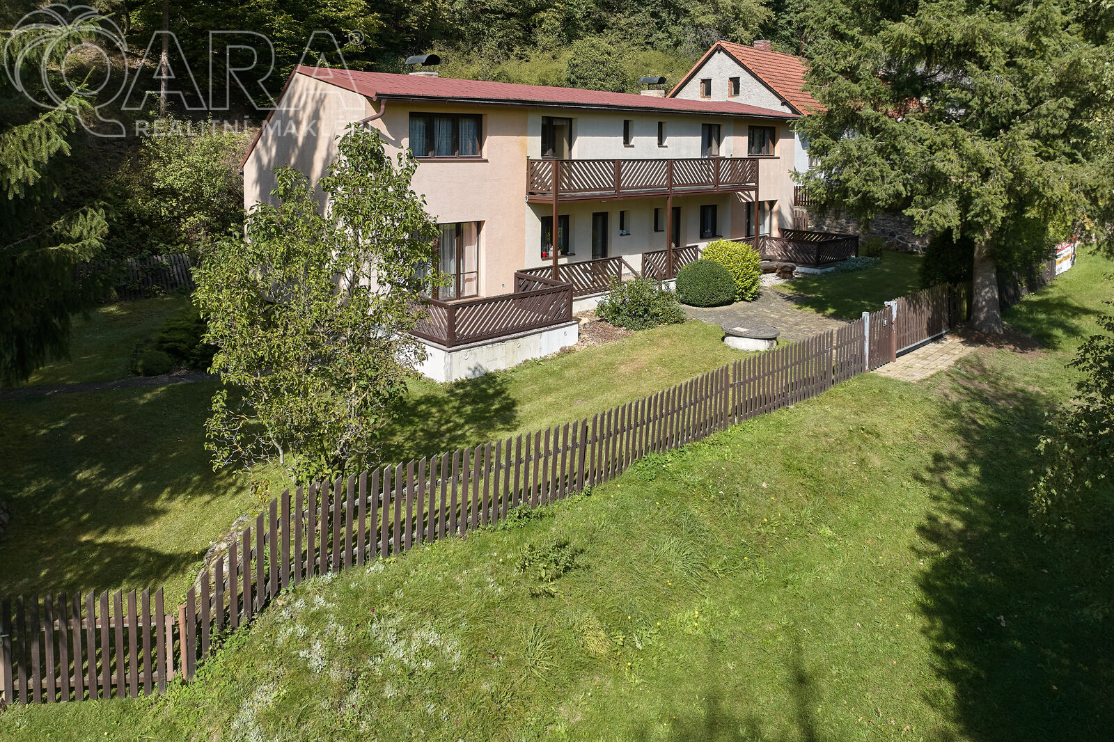 V domě se nachází dvě bytové jednotky zrcadlově obrácené se samostatnými vchody. Snadnou úpravou lze vytvořit jeden prostor, nebo je možné dům využívat k rekreaci a třeba i s možností pronájmu druhé jednotky.