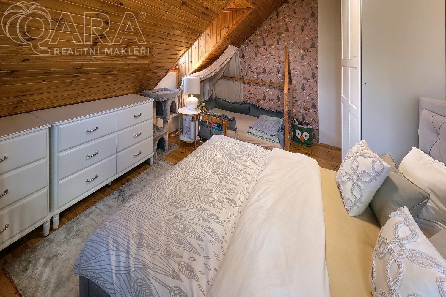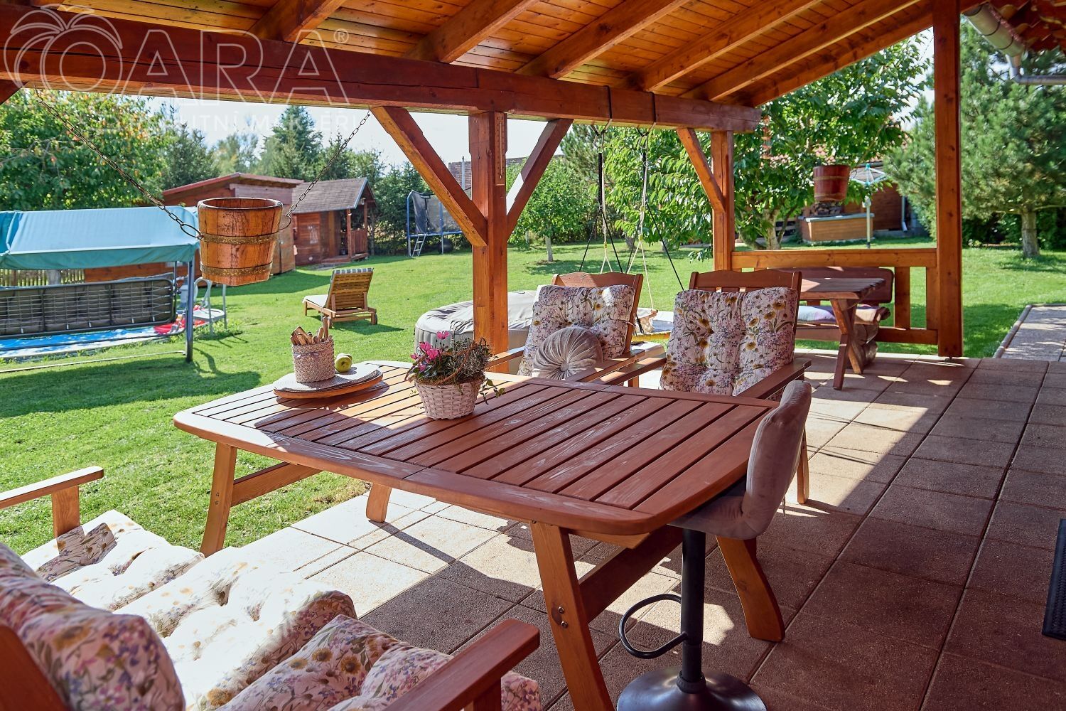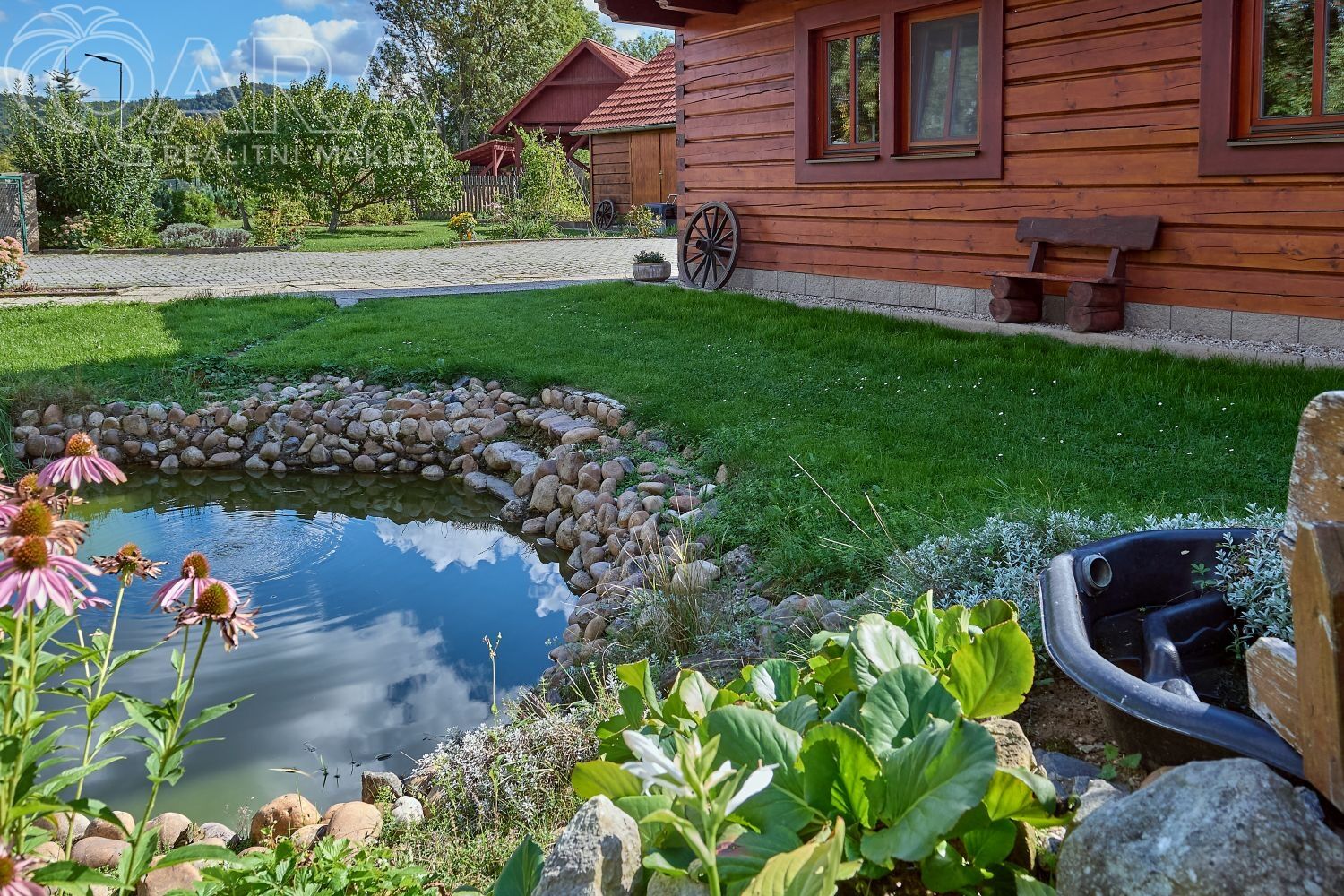 Tato roubenka byla zkolaudovaná v roce 2009 a v posledních dvou letech kompletně zrevitalizována. Nabízí komfort více jak 130 m2 celkové užitné plochy s dispozicí 4+kk a se dvěma koupelnami. Rovinatý pozemek nepravidelného tvaru o velikosti 1750 m2 je s láskou a péčí upravovaný. Nabízí ostrůvky okrasných rostlin, zeleninovou část i ovocné stromy. Je tu vybudované přírodní jezírko i malý bazén. K dispozici je také chatka pro děti, malý dřevěný sklad a samostatný dřevník.